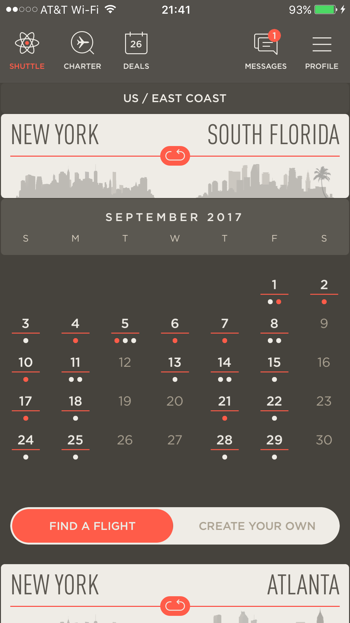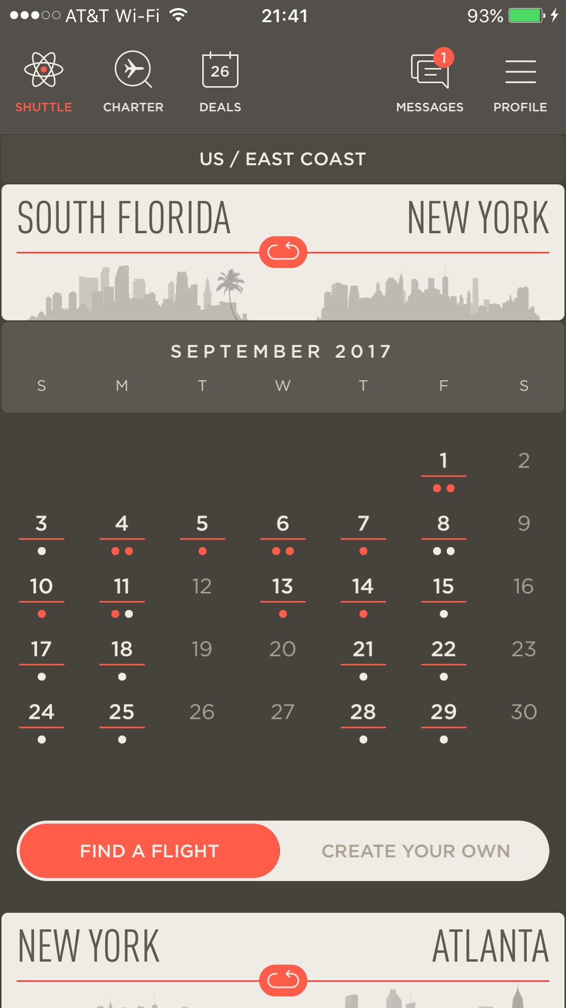 During the first week of September, there are nine shuttles going south and the same number going north. For the second week of September, there seven shuttles going from New York to South Florida and six coming back. Looking at the last two weeks of September, we could only find four shuttles per week in each direction, all from JetSmarter. There was no member initiated shuttles we could find.