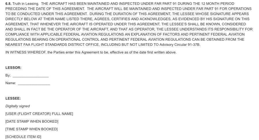 Right above where I would have signed the Aircraft Lease Agreement if I was signing it the old fashioned way instead of an electronic date stamp is a reference to the Truth in Leasing disclosure. It’s only required for aircraft over 12,500 pounds under FAR 91.23 and described in AC 91-37B for aircraft (see below).