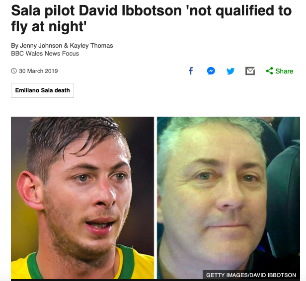 Hirschhorn notes, “The pilot involved in the Sala incident is said to only have a private pilot’s license and was not certified to fly at night due to color blindness.”