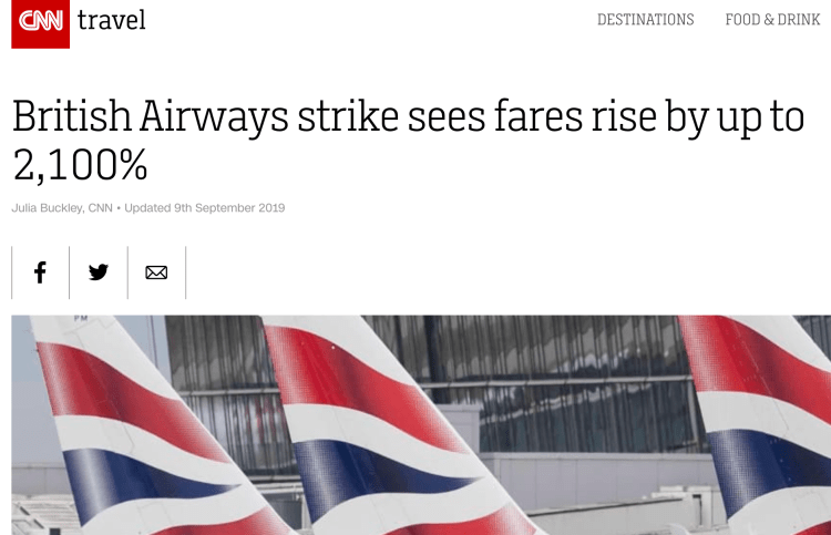 With British Airways canceling nearly all of its flights during a two-day strike by its pilots which ended yesterday, several private jet charter brokers and operators say there was an increase in both inquiries and flights booked.
